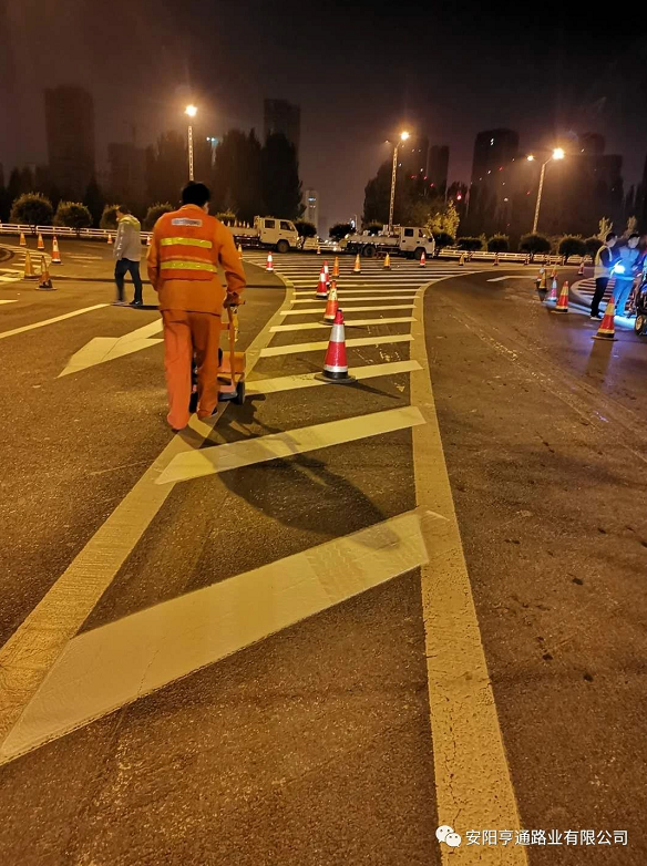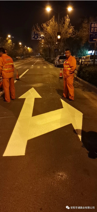 此次標(biāo)線施工,為不影響市政公路通行,均在夜間車流量較少的時(shí)候進(jìn)行施工,在施工安全第 一的前提下,亨通的同事們保質(zhì)保量的用高 效率完成了標(biāo)線試驗(yàn)段施工,該試驗(yàn)段被項(xiàng)目部評(píng)為施工模范。